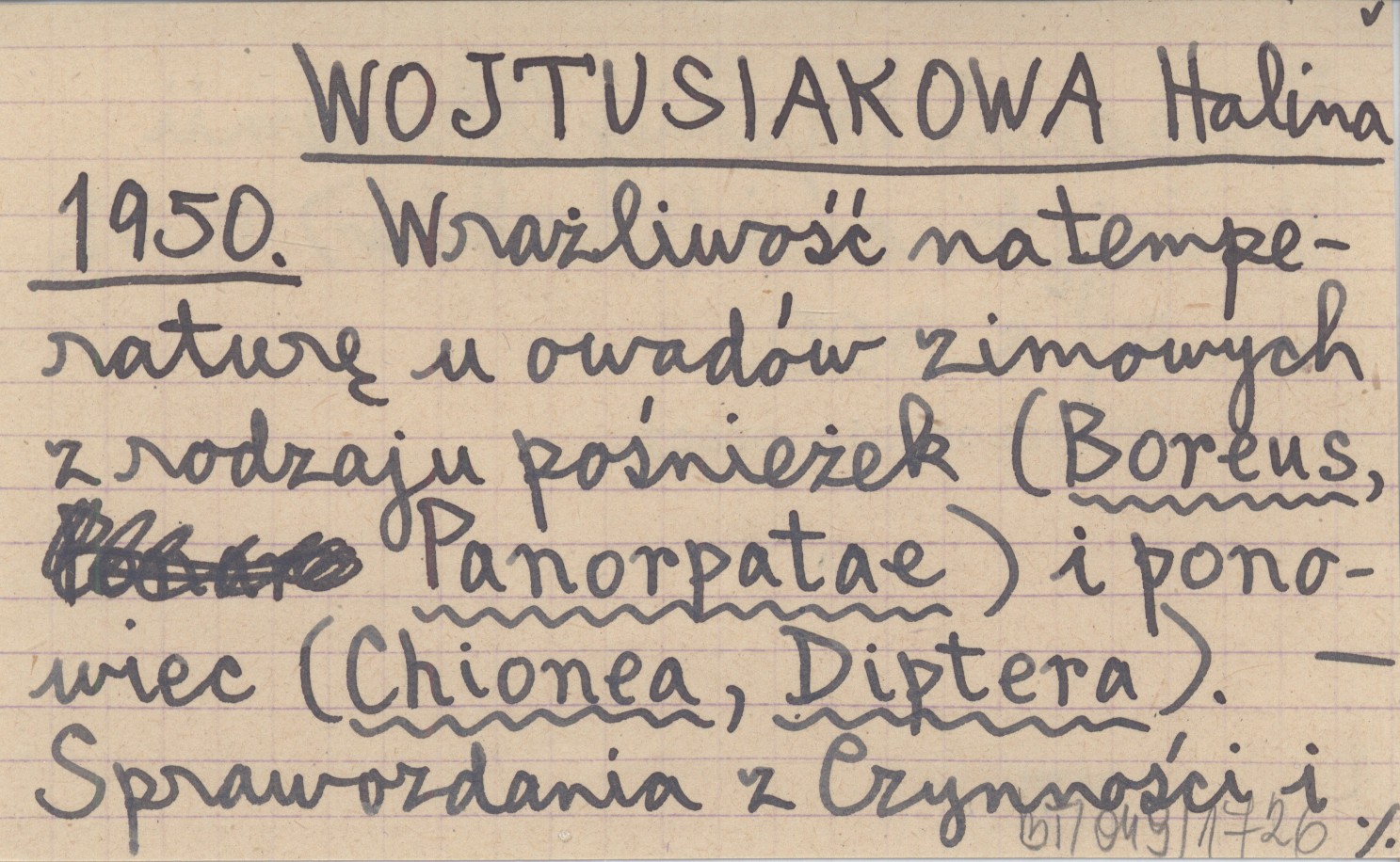 WOJTUSIAKOWA Halina 1950 Wrażliwość na temperaturę u owadów zimowych z rodzaju pośnieżek (Boreus, Panorpatae) i ponowiec (Chionea, Diptera).
