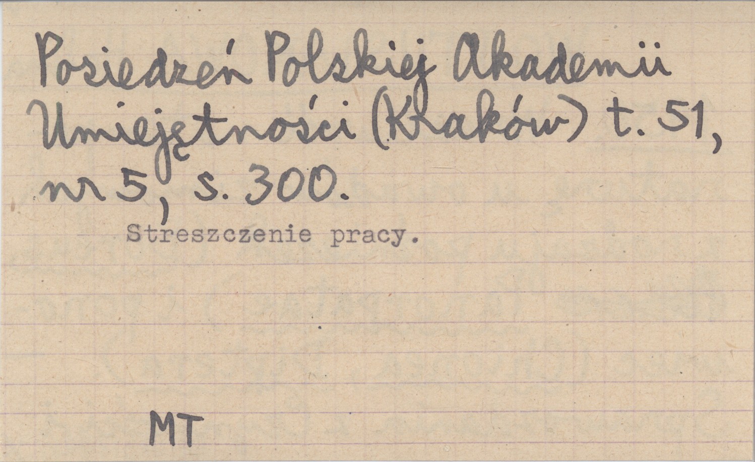 Sprawozdania z Czynności i Posiedzeń Polskiej Akademii Umiejętności (Kraków) , T. 51, nr 5: 300. Streszczenie pracy.