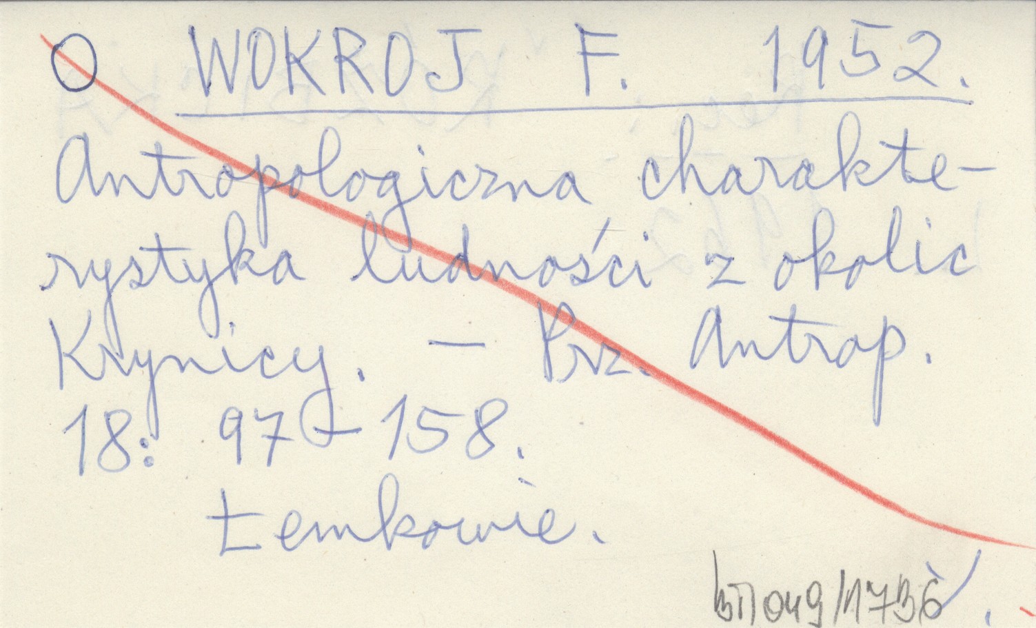 WOKROJ F. 1952 Antropologiczna charakterystyka ludności z okolic Krynicy.