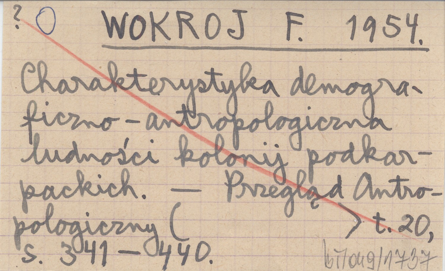 WOKROJ F. 1954 Charakterystyka demograficzno-antropologiczna ludności kolonij podkarpackich.