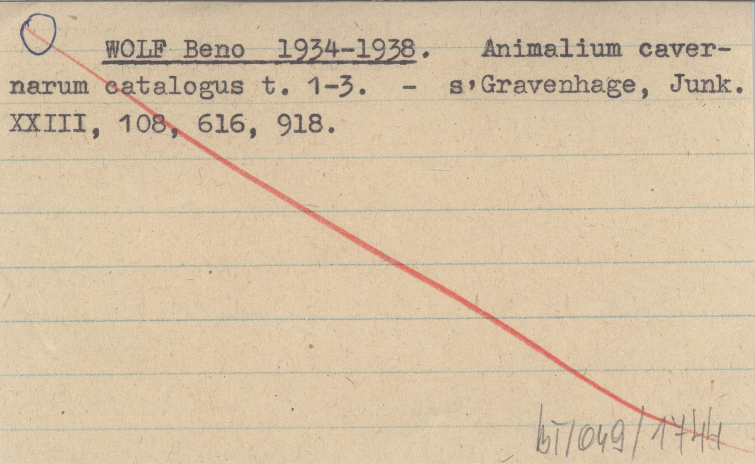 WOLF Beno 1934-1938 Animalium cavernarum catalogus t. 1-3.