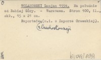 WOLANOWSKI Lucjan 1953 Na południe od Babiej Góry. Reportaż zza miedzy.