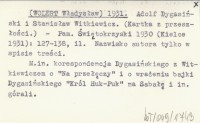 (WOLERT Władysław) 1931 Adolf Dygasiński i Stanisław Witkiewicz. (Kartka z przeszłości).