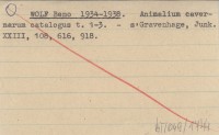 WOLF Beno 1934-1938 Animalium cavernarum catalogus t. 1-3.