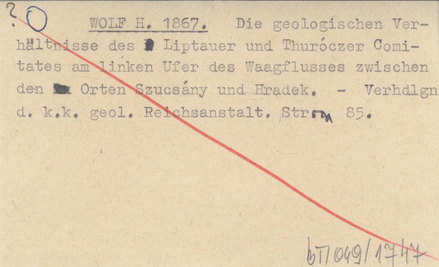 WOLF H. 1867 Die geologischen Verhältnisse des Liptauer und Thuróczer Comitates am linken Ufer des Waagflusses zwischen den Orten Szucsány und Hradek.