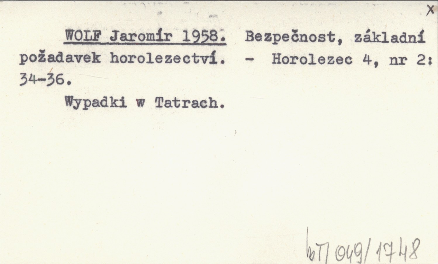 WOLF Jaromír 1958 Bezpečnost, základní požadavek horolezectví.