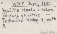 WOLF Juraj 1956... Využitie odpadu v ružomberskej celulózke.