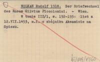 WOLKAN Rudolf 1918 Der Briefwechsel des Eneas Silvius Piccolomini.