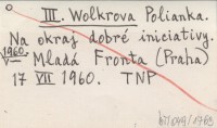 III. Wolkrova Polianka. Na okraj dobré iniciativy. 1960