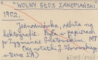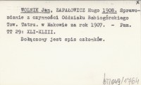 WOLNIK Jan ZAPAŁOWICZ, Hugo. ; 1908 Sprawozdanie z czynności Oddziału Babogórskiego Tow. Tatrz. w Makowie za rok 1907.