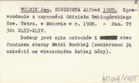 WOLNIK Jan HUBISCHTA, Alfred. ; 1909 Sprawozdanie z czynności Oddziału Babogórskiego Tow. Tatrz. w Makowie w r. 1908.