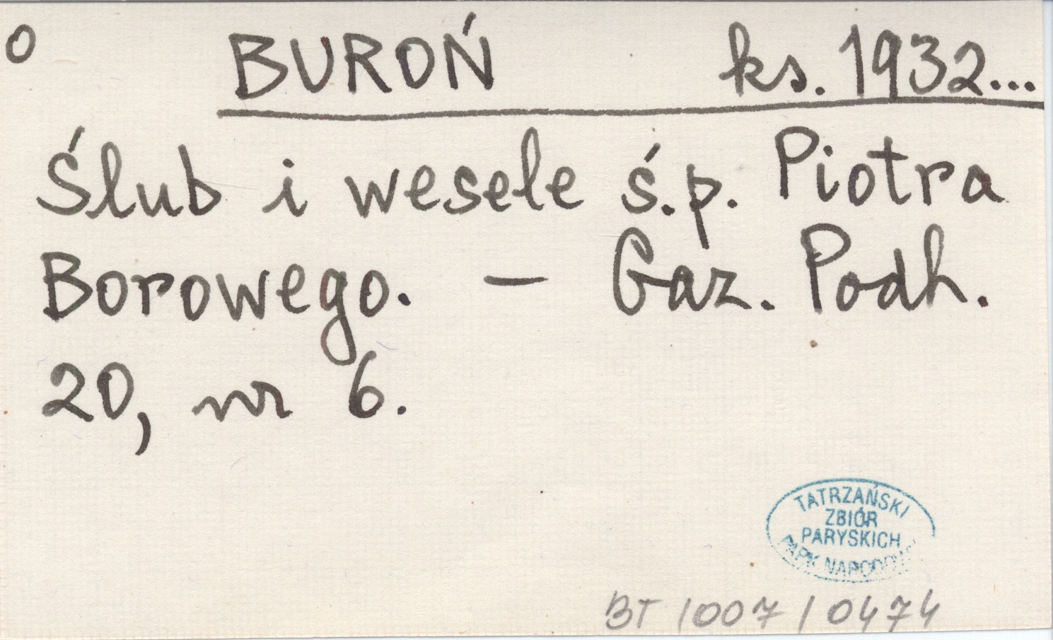 BUROŃ Józef ks. 1932... Ślub i wesele ś. p. Piotra Borowego.