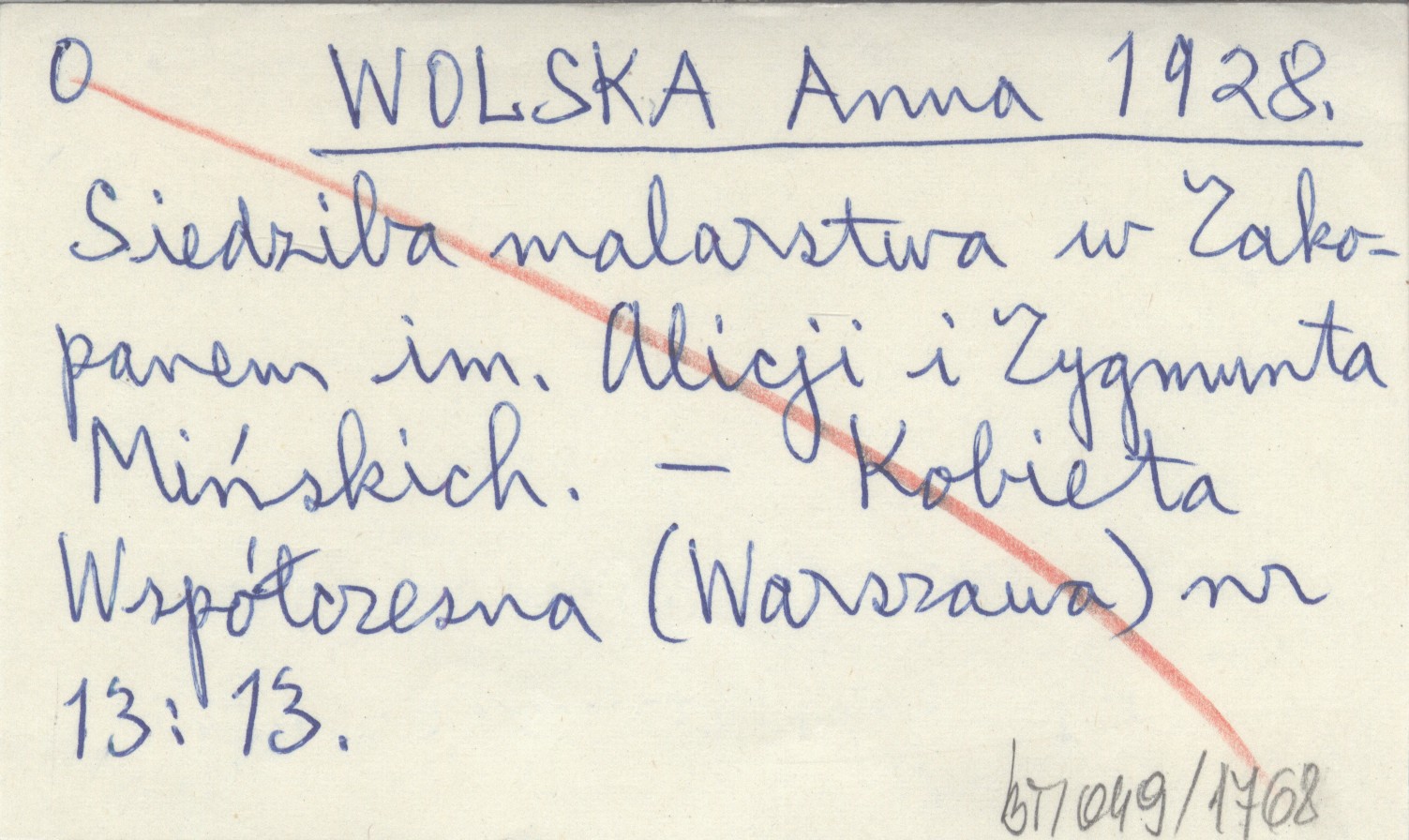 WOLSKA Anna 1928 Siedziba malarstwa w Zakopanem im. Alicji i Zygmunta Mińskich.