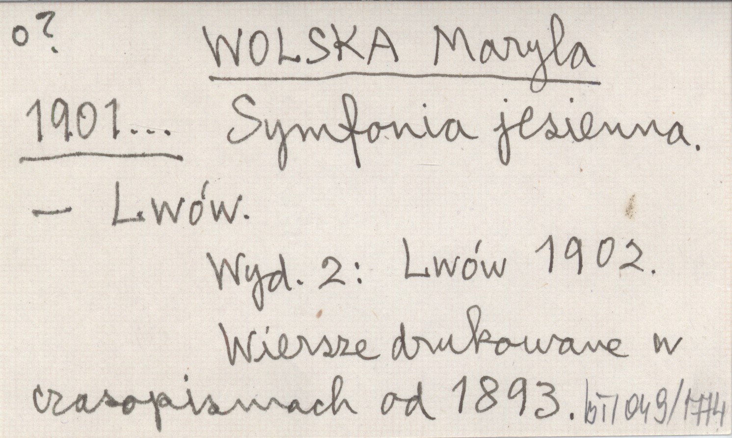 Lwów , Wyd. 2: Lwów 1902. Wiersze drukowane w czasopismach od 1893.