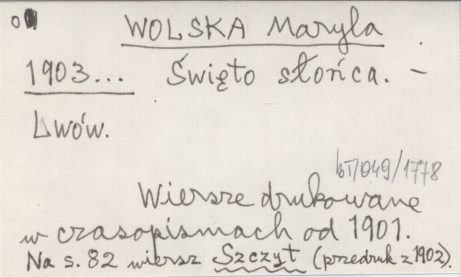 Lwów , Wiersze drukowane w czasopismach od 1901. Na s. 82 wiersz Szczyt (przedruk z 1902).