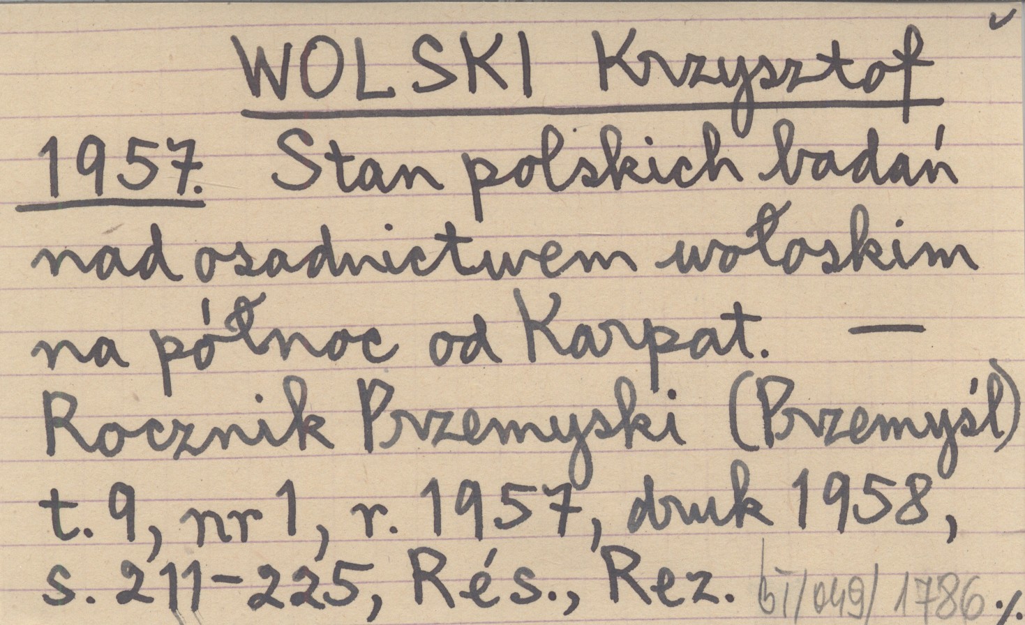 WOLSKI Krzysztof 1957 Stan polskich badań nad osadnictwem wołoskim na północ od Karpat.