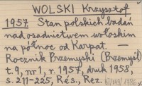 WOLSKI Krzysztof 1957 Stan polskich badań nad osadnictwem wołoskim na północ od Karpat.