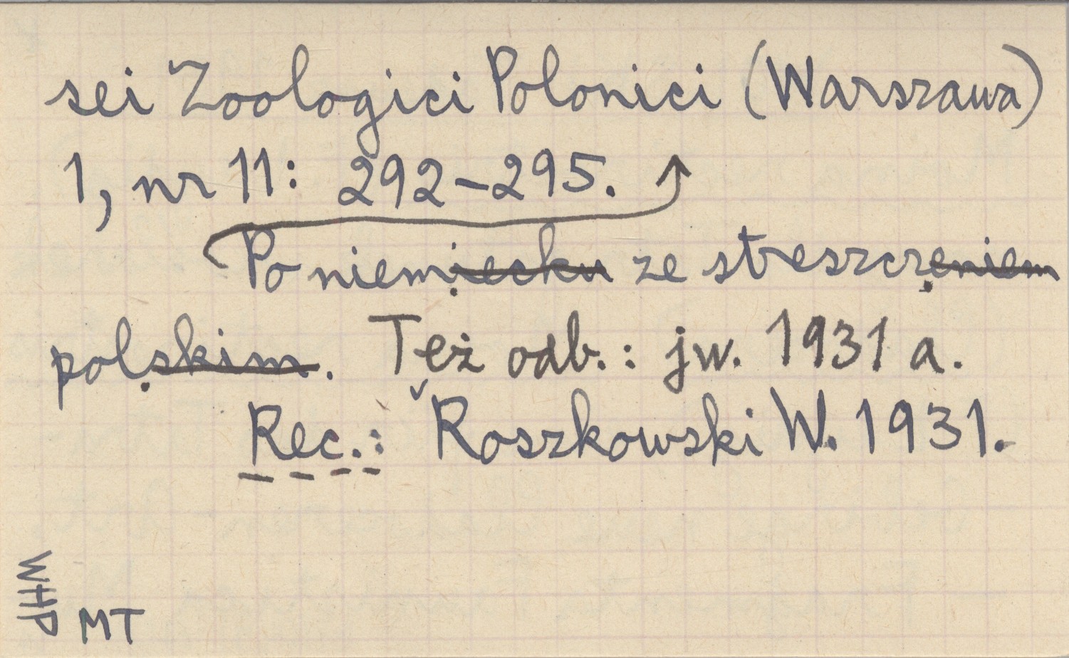 Fragmenta Faunistica Musei Zoologici Polonici (Warszawa) , 1, nr 11: 292-295. Po niem. ze streszcz. pol. Też odb.: jw. 1931 a. REC: ROSZKOWSKI W. 1931