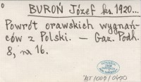 BUROŃ Józef ks. 1920... Powrót orawskich wygnańców z Polski.