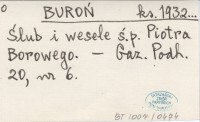 BUROŃ Józef ks. 1932... Ślub i wesele ś. p. Piotra Borowego.