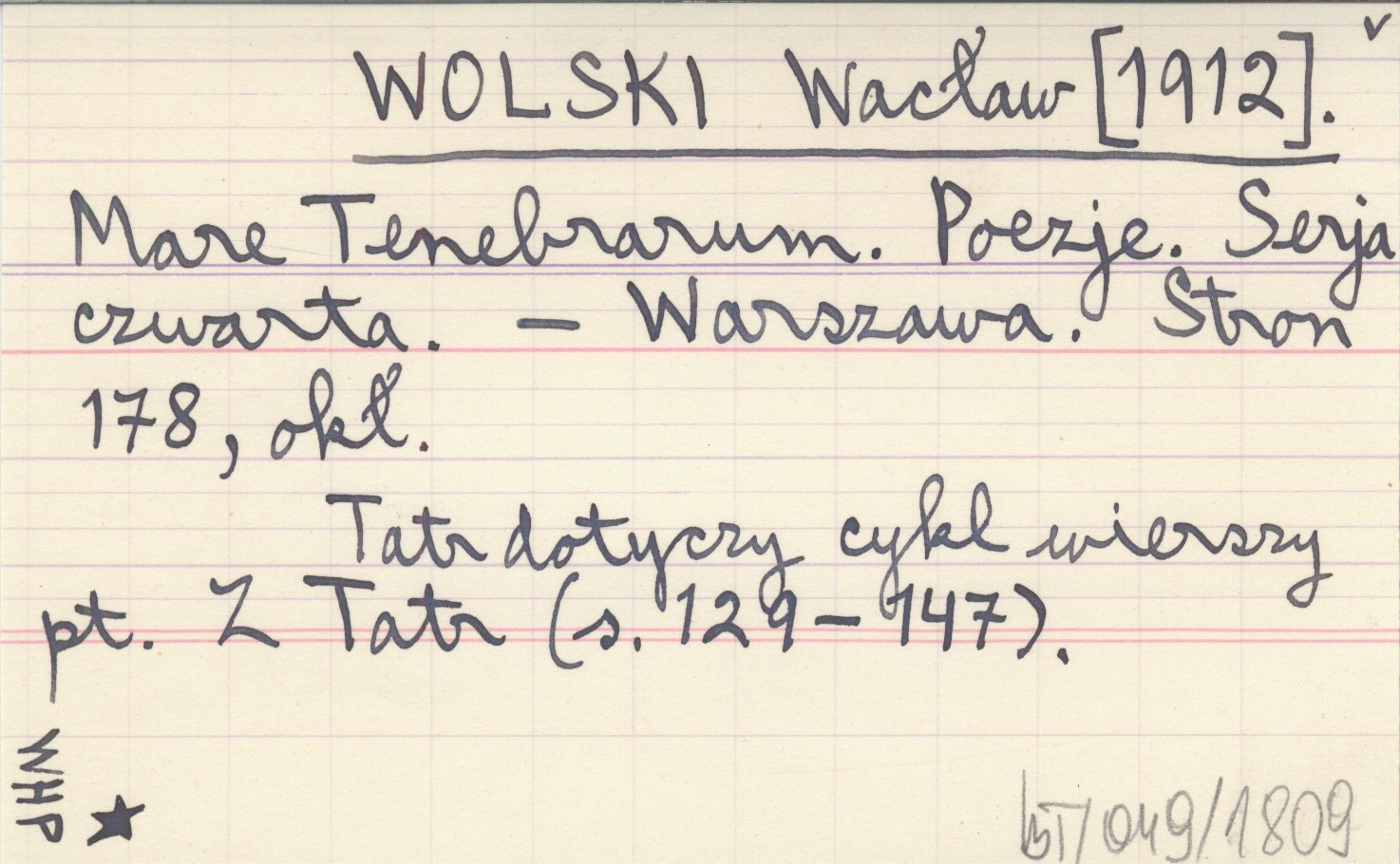 WOLSKI Wacław [1912] Mare Tenebrarum. Poezje. Serja czwarta.