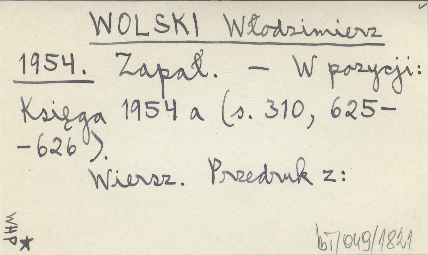 Księga 1954 a. , S. 310, 625-626. Wiersz. Przedruk z: