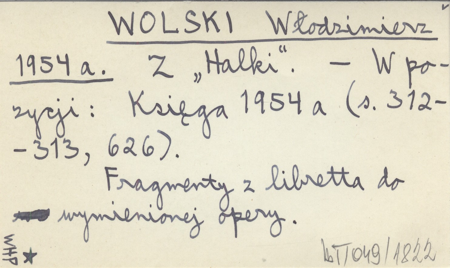 Księga 1954 a. , S. 312-313, 626. Fragmenty z libretta do wymienionej opery.