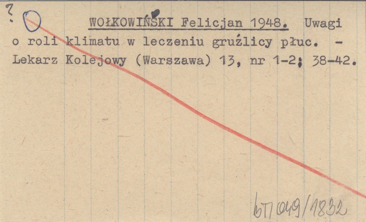 WOŁKOWIŃSKI Felicjan 1948 Uwagi o roli klimatu w leczeniu gruźlicy płuc.