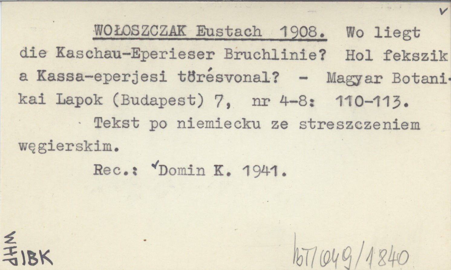 WOŁOSZCZAK Eustach 1908 Wo liegt die Kaschau-Eperieser Bruchlinie? Hol fekszik a Kassa-eperjesi törésvonal?