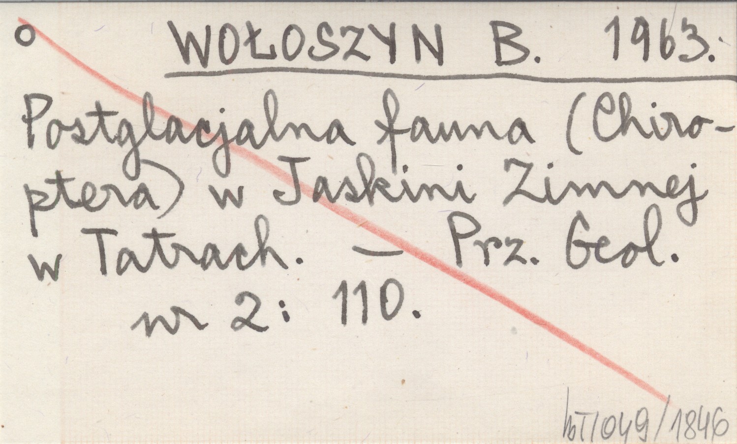 WOŁOSZYN B. 1963 Postglacjalna fauna (Chiroptera) w Jaskini Zimnej w Tatrach.