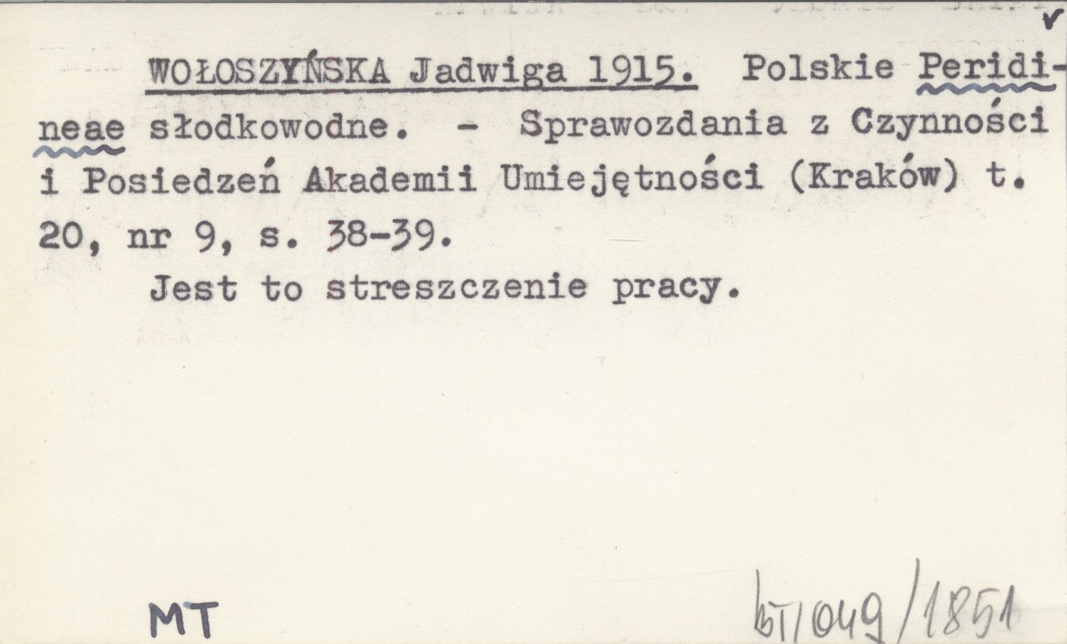 Sprawozdania z Czynności i Posiedzeń Polskiej Akademii Umiejętności (Kraków) , T. 20, nr 9: 38-39. Jest to streszczenie pracy.