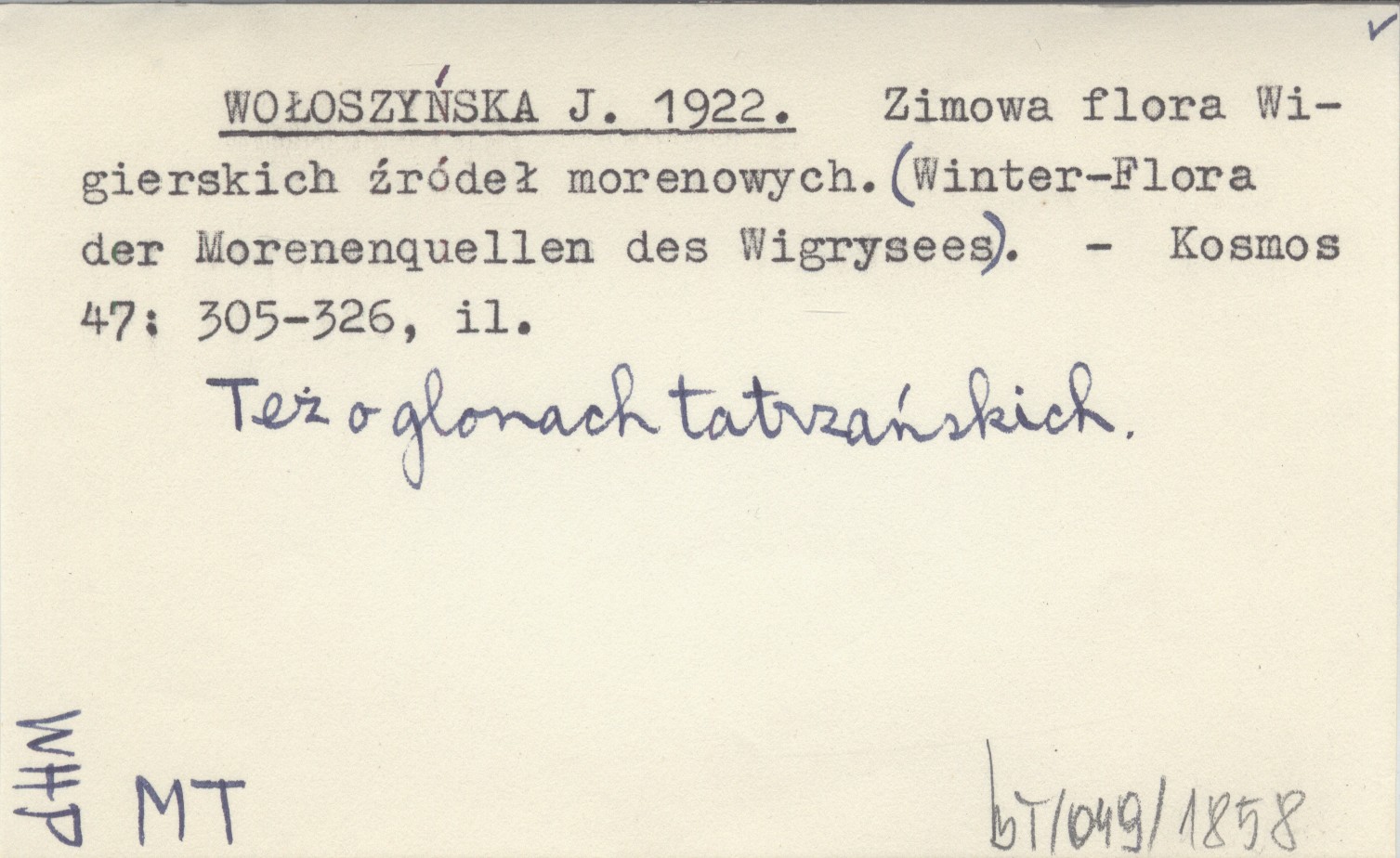 WOŁOSZYŃSKA J. 1922 Zimowa flora Wigierskich źródeł morenowych. (Winter-Flora der Morenenquellen des Wigrysees).