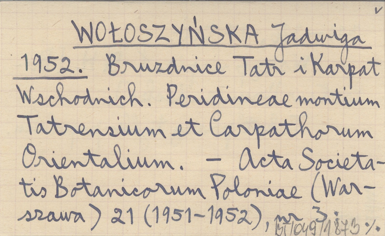WOŁOSZYŃSKA Jadwiga 1952 Bruzdnice Tatr i Karpat Wschodnich. Peridineae montium Tatrensium et Carpathorum Orientalium.