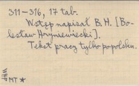 Acta Societatis Botanicorum Poloniae (Warszawa) , 21 (1951-1952), nr 3: 311-316, 17 k. tabl. Wstęp napisał B. H. [Bolesław Hryniewiecki]. Tekst pracy tylko po polsku.