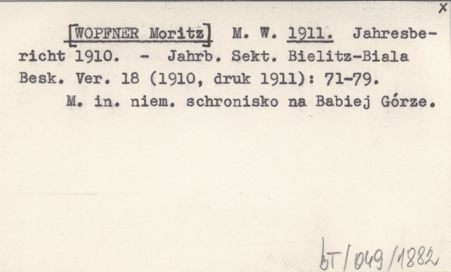 Jahrbuch der Sektion Bielitz-Biala des Beskidenvereines, 18 (1910, druk 1911): 71-79. M.in. niem. schronisko na Babiej Górze.