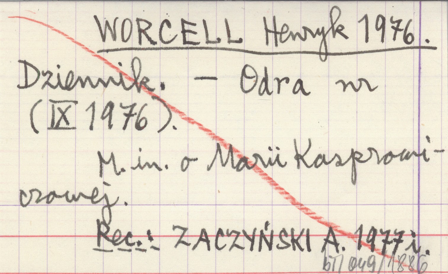 Odra, IX 1976. M.in. o Marii Kasprowiczowej. REC: ZACZYŃSKI A. 1977 i