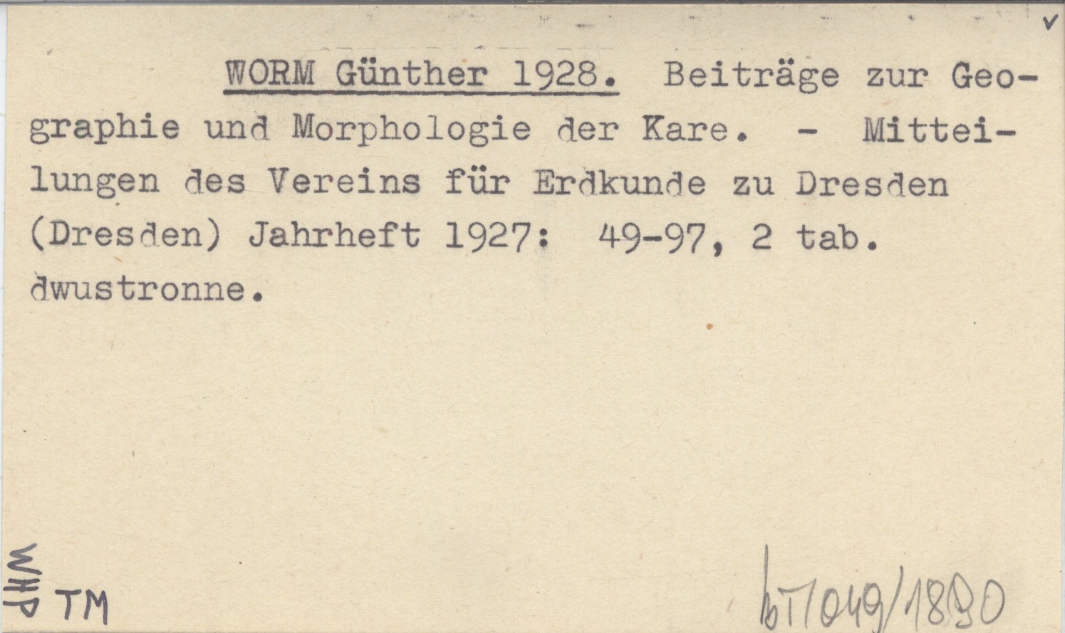 WORM Günther 1928 Beiträge zur Geographie und Morphologie der Kare.