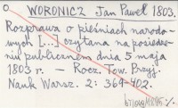 WORONICZ Jan Paweł 1803 Rozprawa o pieśniach narodowych [...] czytana na posiedzeniu publicznem dnia 5 maja 1803 r.