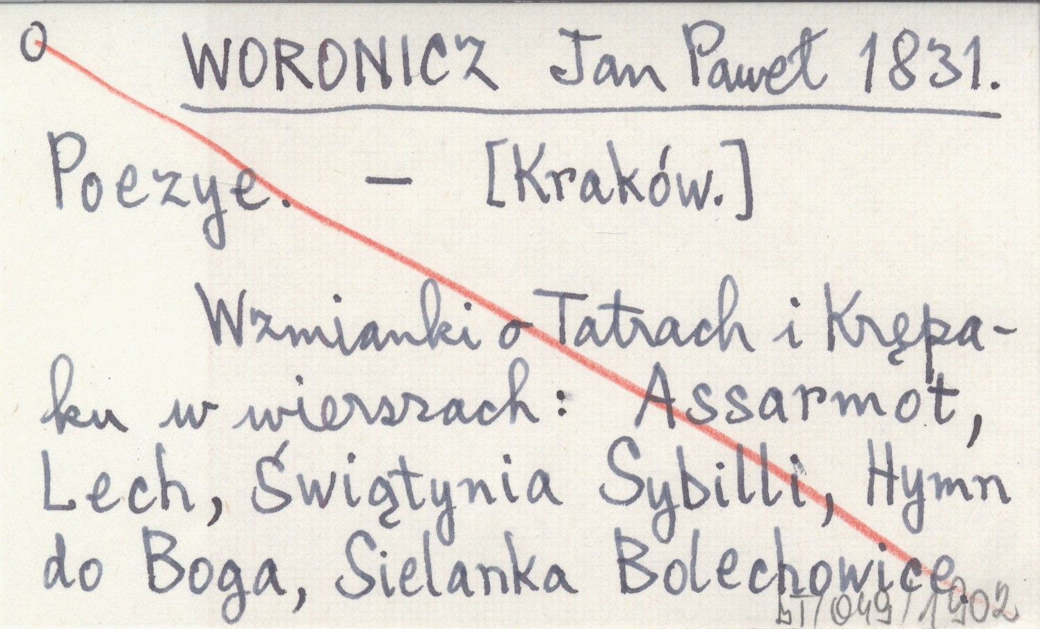 [Kraków] , Wzmianki o Tatrach i Krępaku w wierszach: Assarmot, Lech, Świątynia Sybilli, Hymn do Boga, Sielanka Bolechowice.