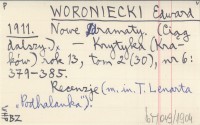 WORONIECKI Edward 1911 Nowe dramaty. (Ciąg dalszy).