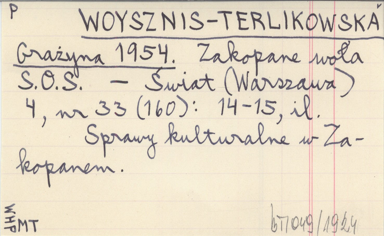 Świat (Warszawa) , 4, nr 33 (160): 14-15, il. Sprawy kulturalne w Zakopanem.