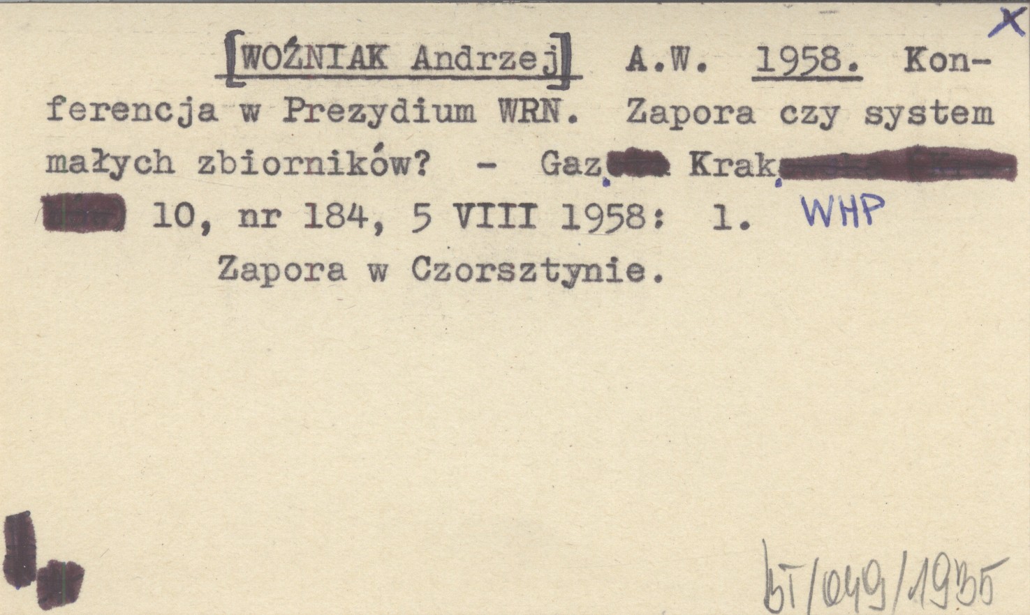 A.W. [WOŹNIAK Andrzej] 1958 Konferencja w Prezydium WRN. Zapora czy system małych zbiorników?