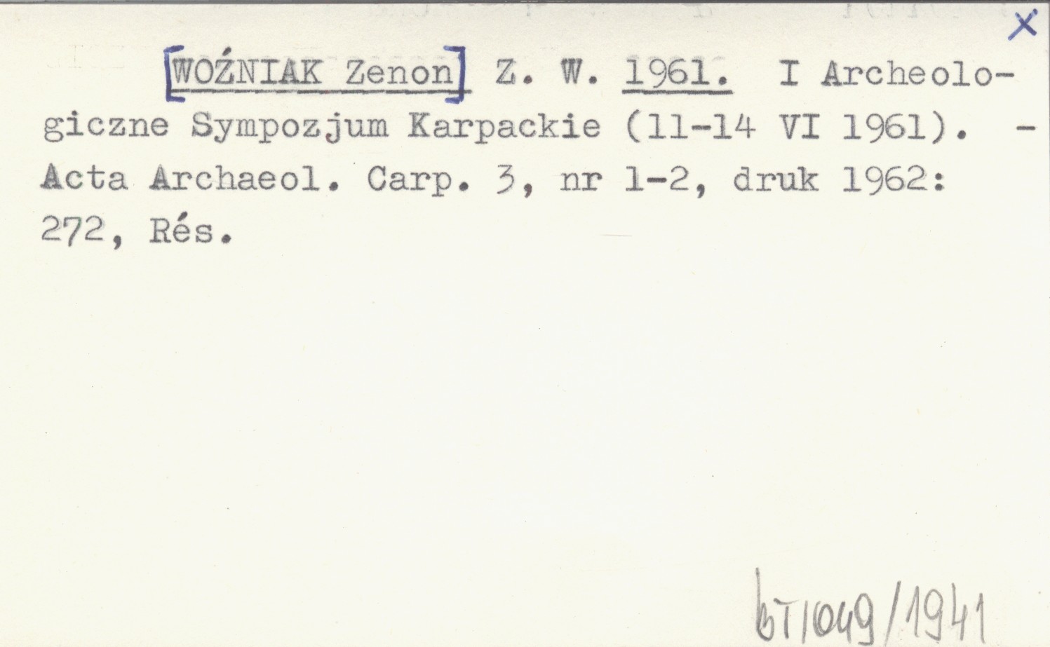 Z. W. [WOŹNIAK Zenon] 1961 I Archeologiczne Sympozjum Karpackie (11-14 VI 1961).
