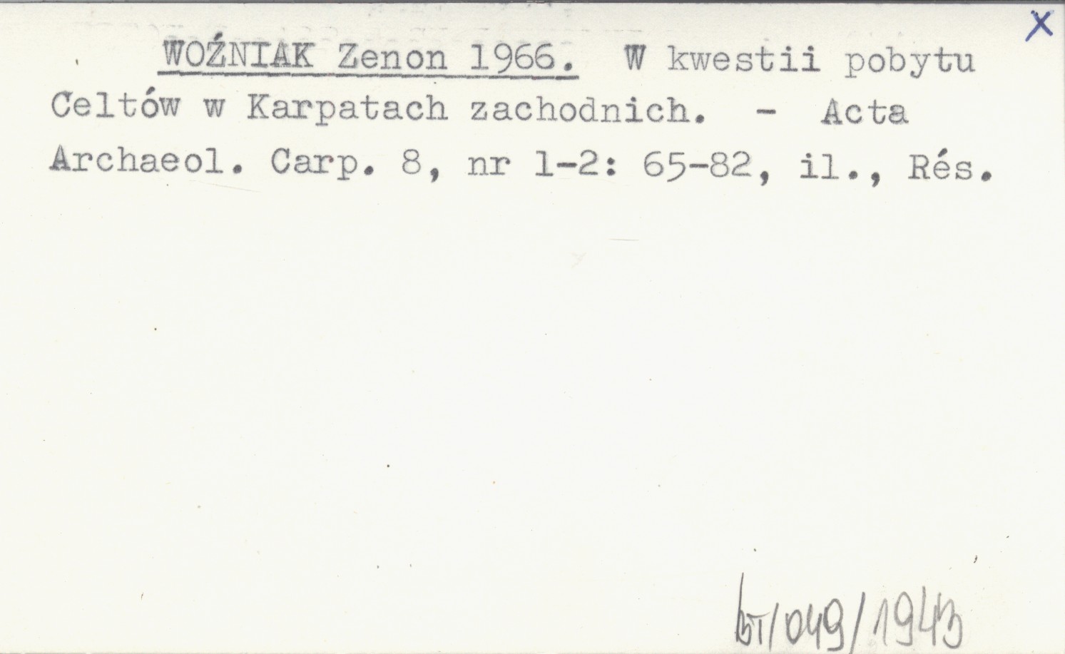 WOŹNIAK Zenon 1966 W kwestii pobytu Celtów w Karpatach zachodnich.