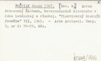 WOŹNIAK Zenon 1967 Anton Petrovský Šichman, Severozápadné Slovensko v dobe laténskej a rímskej. "Vlastivedný Sborník Považia" VII, 1965.