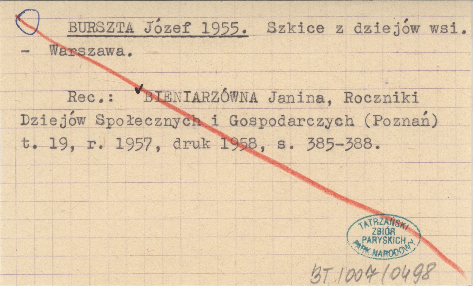 Warszawa , REC: BIENIARZÓWNA Janina, Roczniki Dziejów Społecznych i Gospodarczych (Poznań) t. 19, r. 1957, druk 1958: 385-388.