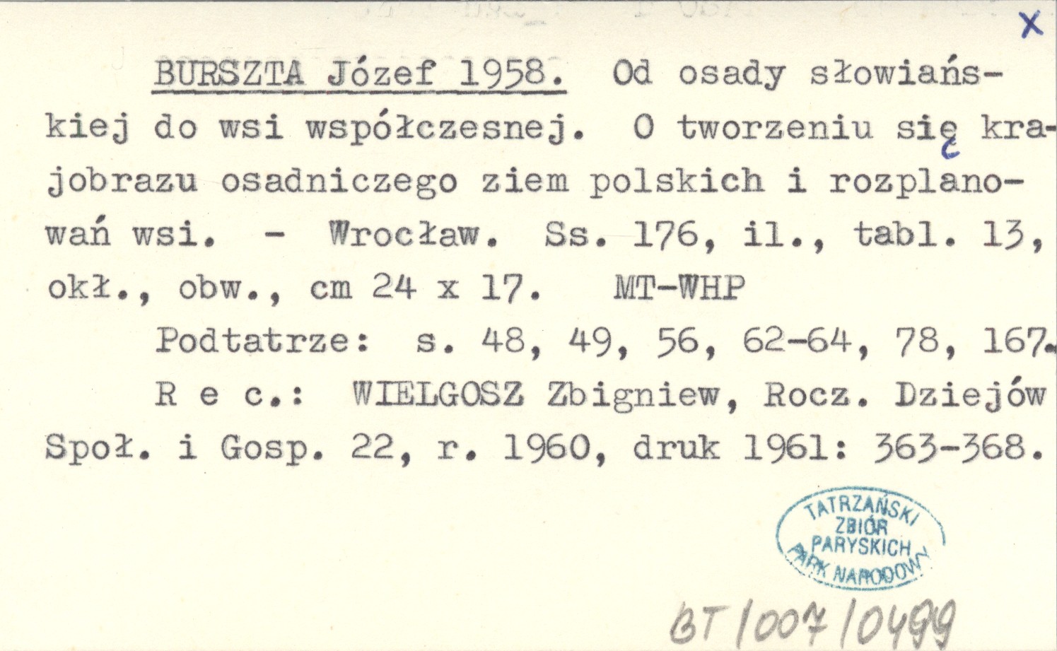 BURSZTA Józef 1958 Od osady słowiańskiej do wsi współczesnej. O tworzeniu się krajobrazu osadniczego ziem polskich i rozplanowań wsi.