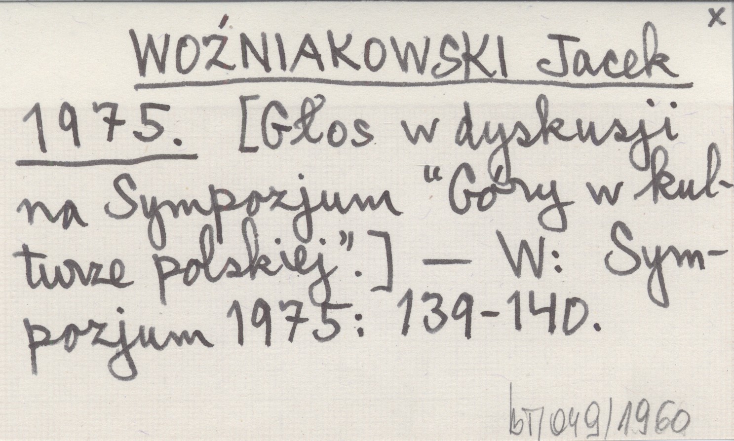 WOŹNIAKOWSKI Jacek 1975 [Głos w dyskusji na Sympozjum "Góry w kulturze polskiej"].