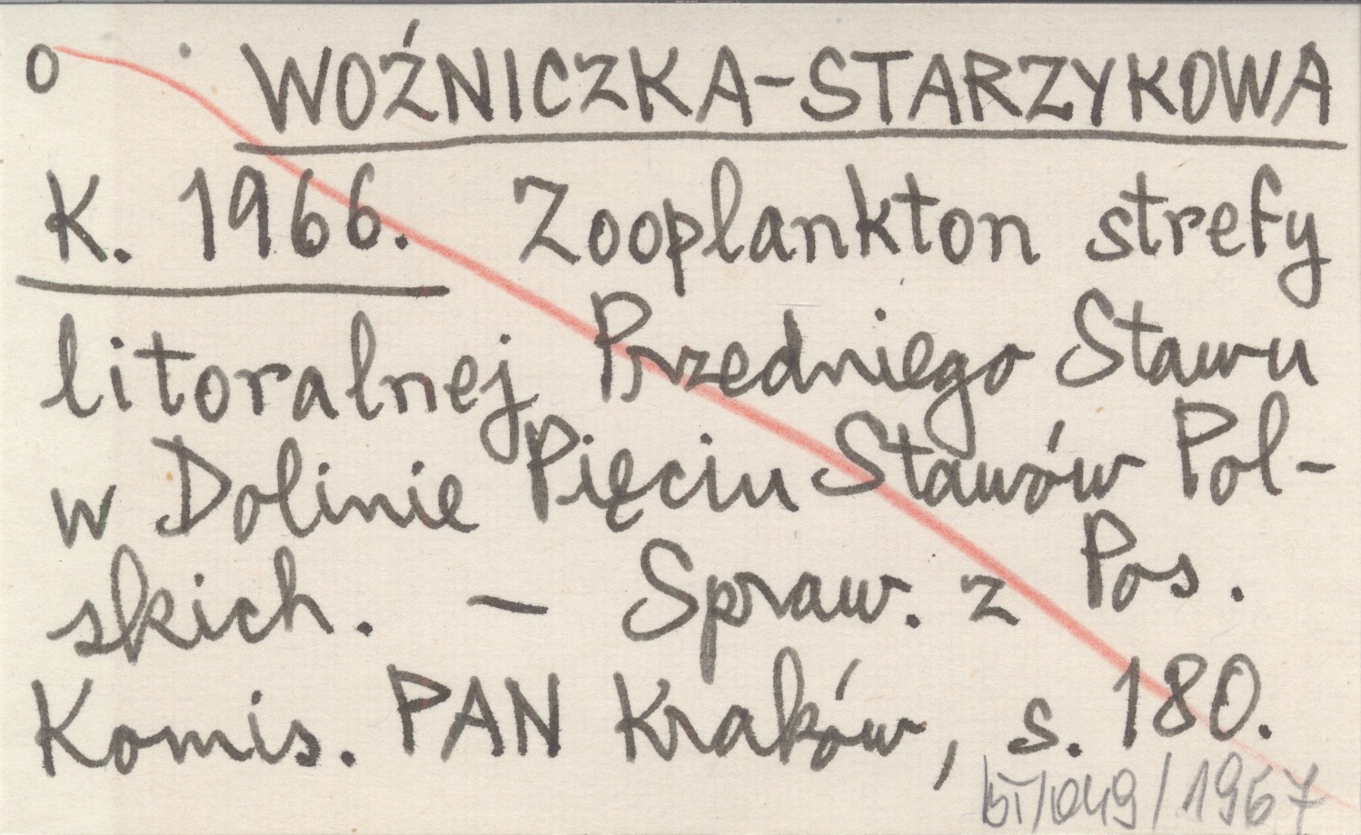 WOŹNICZKA-STARZYKOWA K. 1966 Zooplankton strefy litoralnej Przedniego Stawu w Dolinie Pięciu Stawów Polskich.