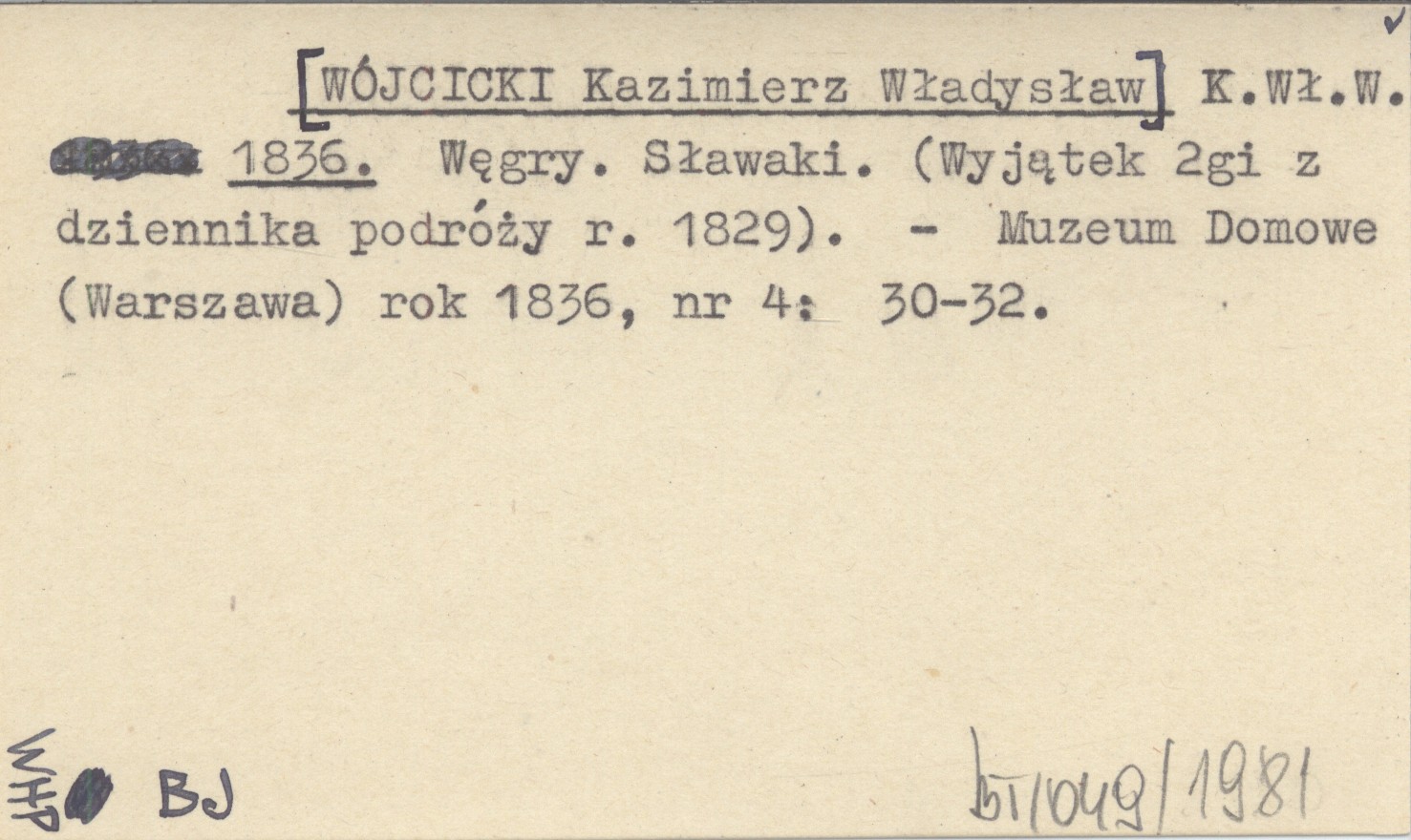 K.Wł.W. [WÓJCICKI Kazimierz Władysław] 1836 Węgry. Sławaki. (Wyjątek 2gi z dziennika podróży r. 1829).